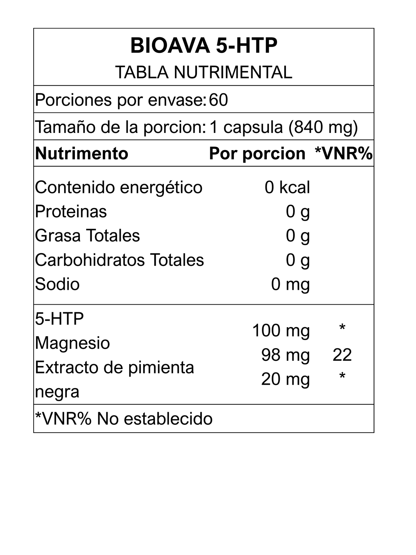 Extracto de 5-HTP (5-Hidroxitriptofano), magnesio y pimienta negra.