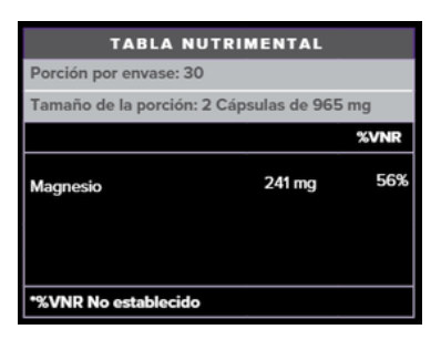 Tomar 2 cápsulas de BIOAVA GLICINATO DE MAGNESIO al día. Porción por envase 30 porciones. Presentación 60 cápsulas.